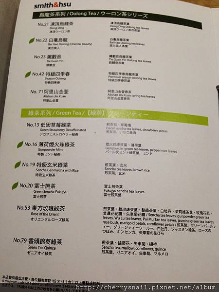 讓客人可以自己挑選喜愛的味道,再對上MENU的號碼,就可知道是什麼茶
