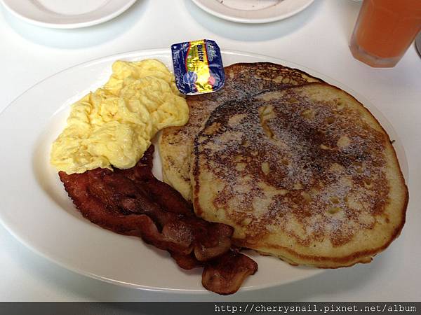 鬆餅超級大,加上糖霜真的超好吃,但可以選擇炒蛋或是太陽蛋,整個真