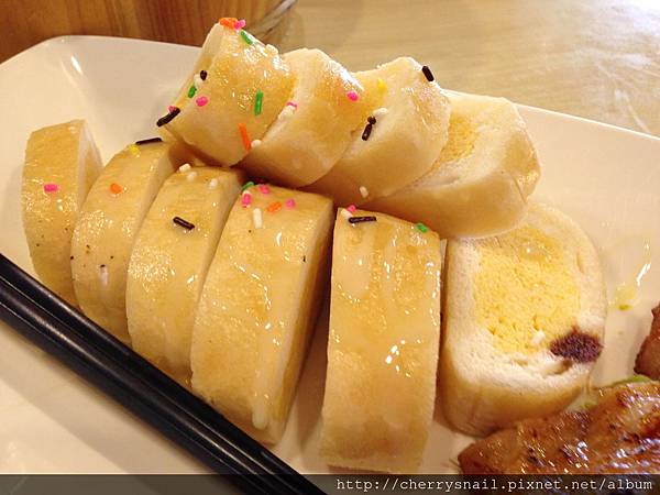 銀絲捲不會過油,感覺只是微炸一下就起鍋,也不含油,淋上一點煉乳,
