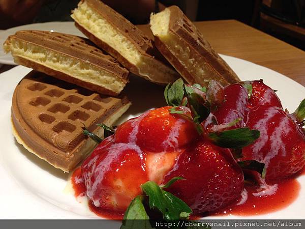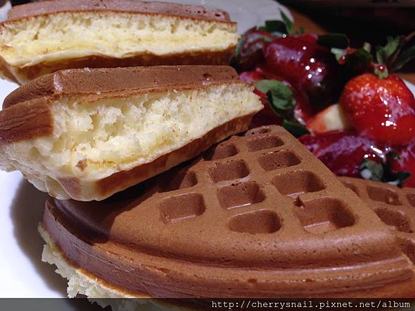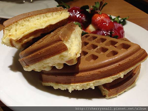 看看外酥內軟的鬆餅,即使單吃也很美味