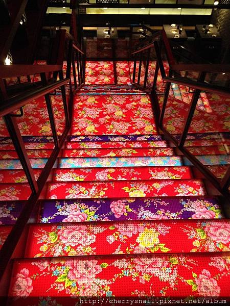 裡面地板是大紅花復古風