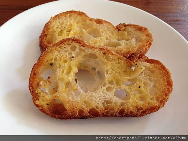 這邊烤的酥酥的,口感類似餅乾,香蒜味道香而不嗆