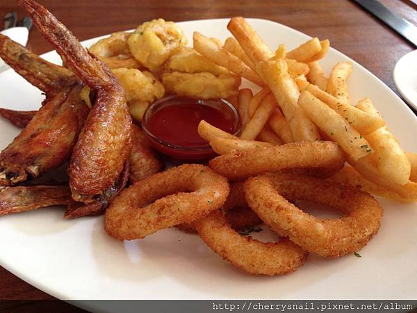 內含雞翅/薯條/洋蔥圈/花枝圈,每一樣都好好吃,花枝圈是整圈的花枝