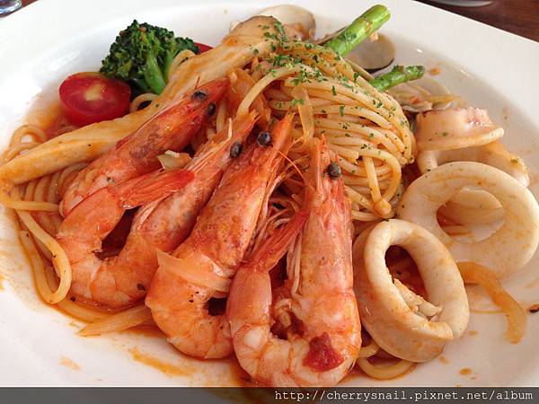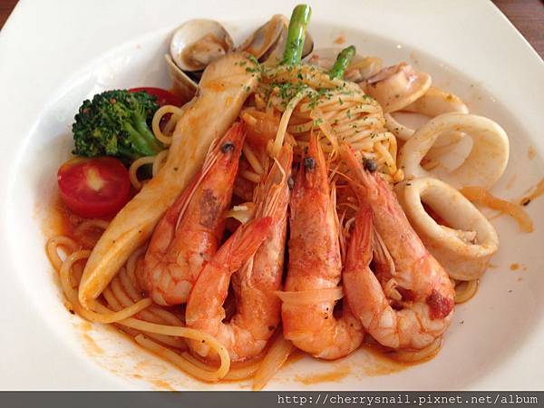 看看這海鮮,挺豐富的,蝦子很貼心的去殼,省去剝殼的麻煩,麵條軟硬