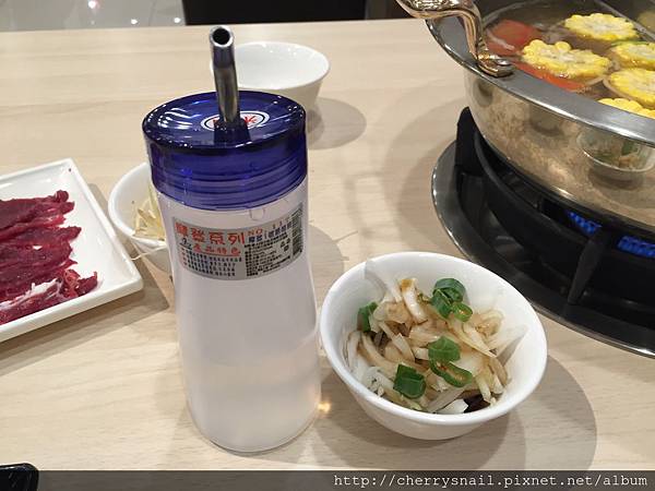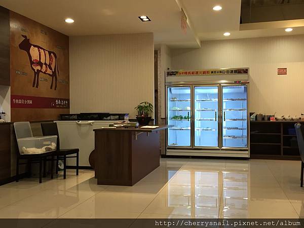 這邊採半自助模式,火鍋料及青菜都在冰箱自取,牛肉現切就在照片的桌面