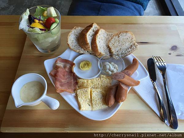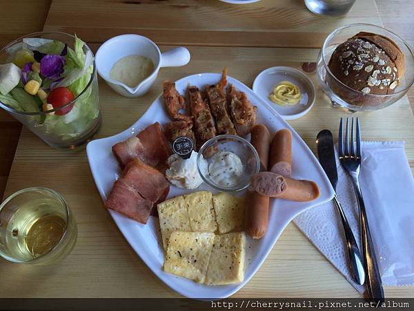 內含沙拉、蛋、德式香腸、美式培根、季節水果、歐式麵包